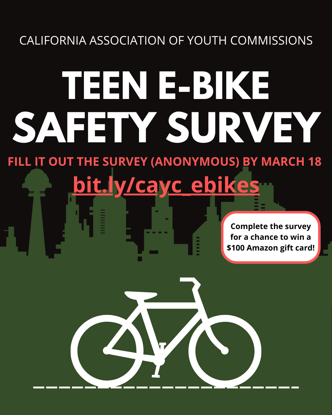Take our anonymous survey for California youth in grades 5-12. Participants can enter a raffle for a chance to win a $100 Amazon gift card!
